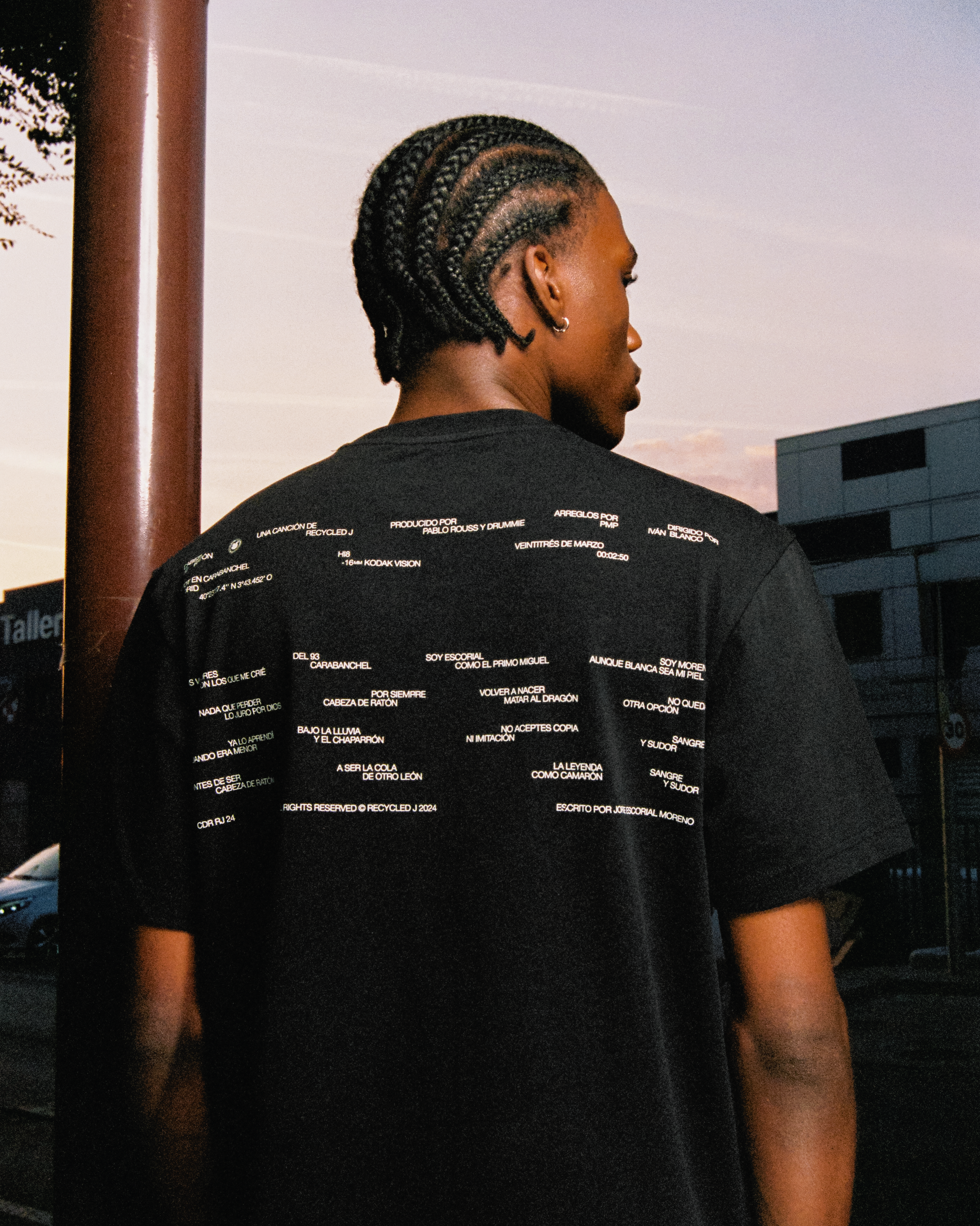Camiseta negra fit regular del single CABEZA DE RATÓN de Recycled J. Print en pecho y espalda. 100% algodón. 200 gramos.
