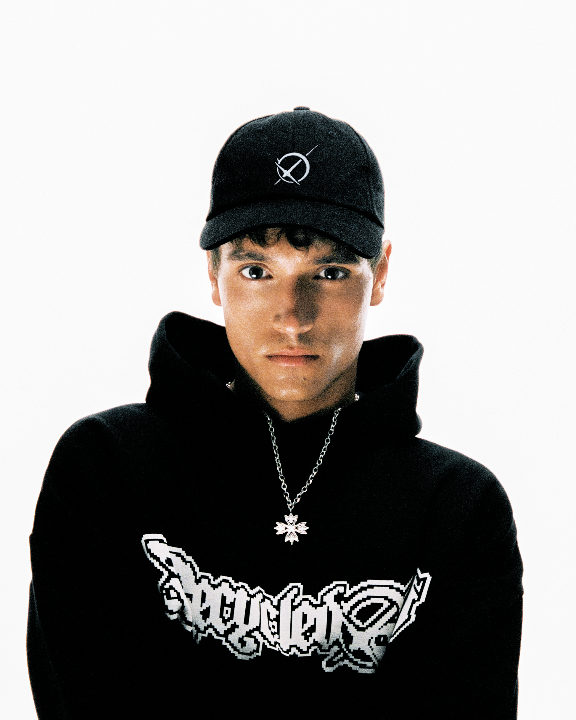 Bordado blanco del Ø en el panel frontal y en la parte trasera. Strap ajustable en la parte posterior con cierre metálico. Etiqueta personalizada en el interior.