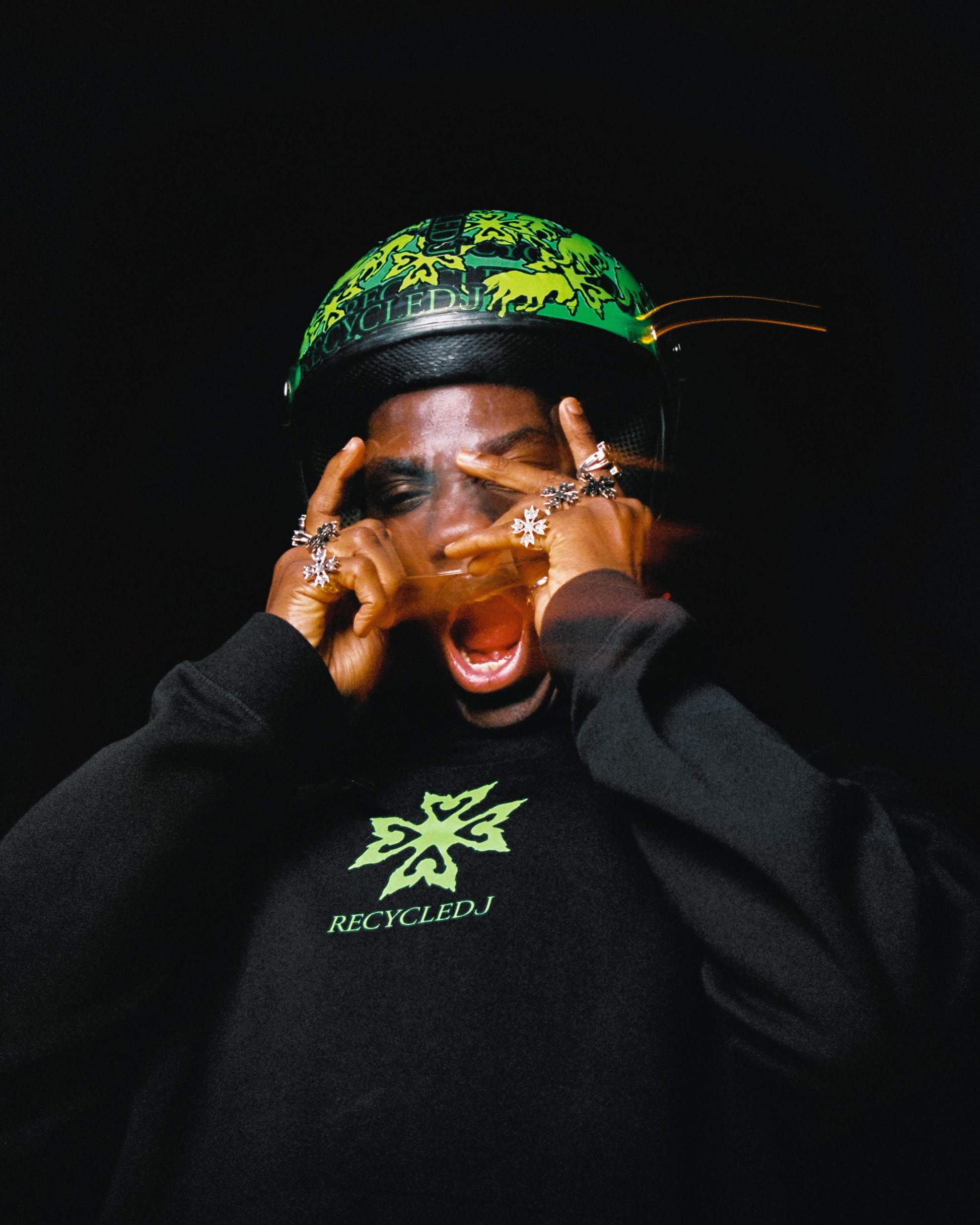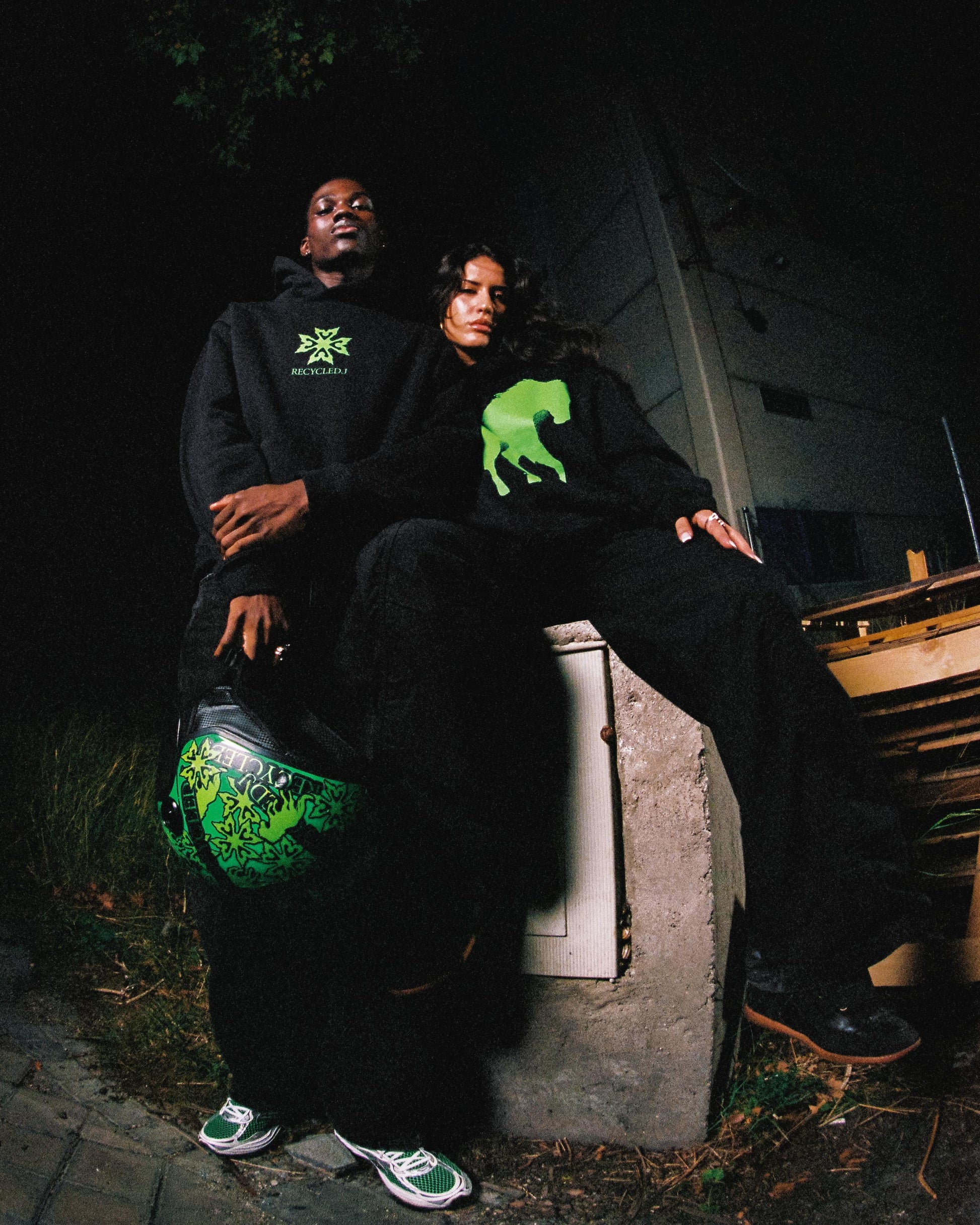 Sudadera negra con capucha y sin cordones. Corte oversize. Print en pecho y espalda con cruz de SJ. 100% algodón, felpa perchada. Bolsillo de canguro en el abdomen. 400 gramos.
