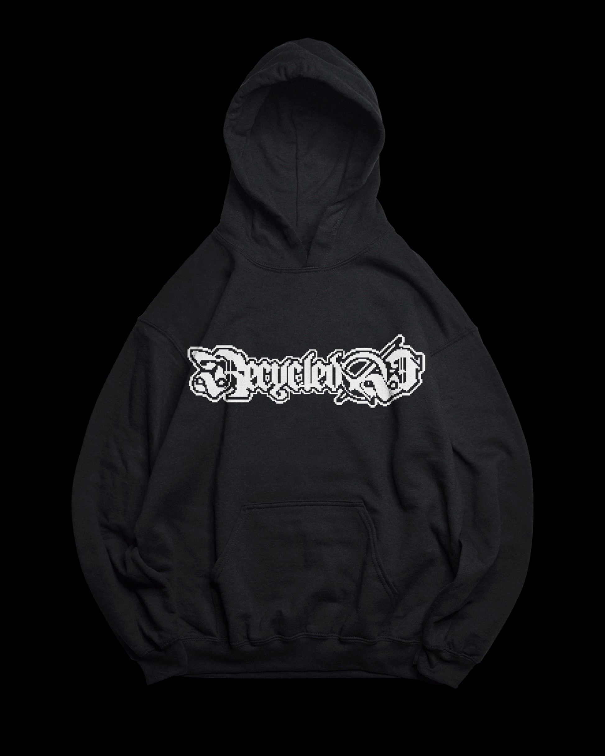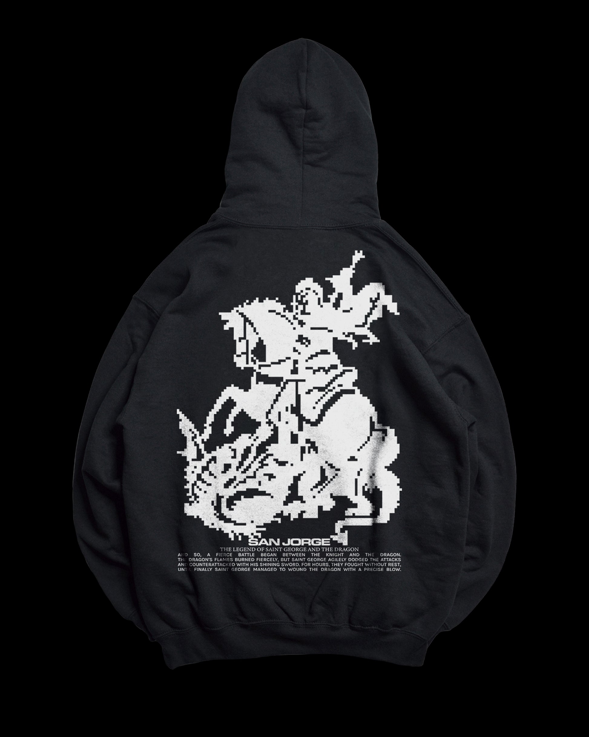 Píxel Hoodie ®. Sudadera negra con capucha. Corte oversize. Print de serigrafía en pecho y espalda. 100% algodón, felpa perchada. 400 gramos.